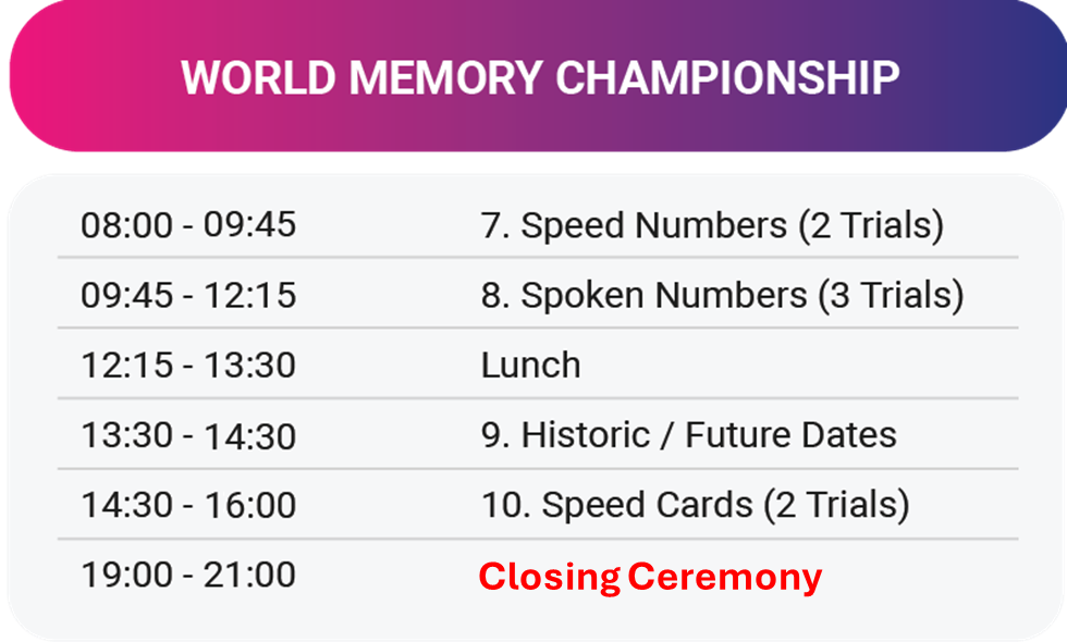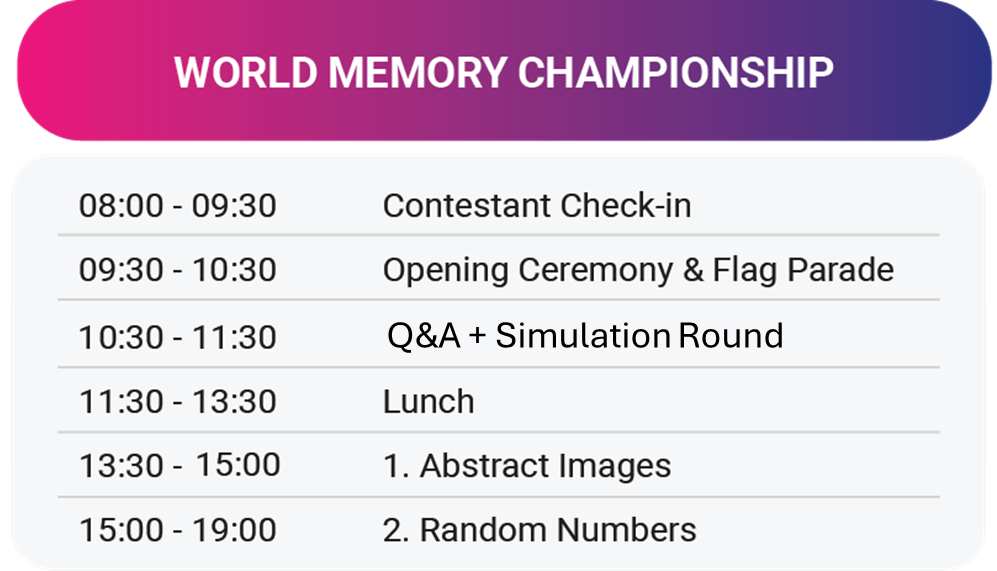 Giải đấu Trí nhớ Thế giới 2025 là sự kiện đẳng cấp toàn cầu, quy tụ những bộ óc xuất sắc nhất đến từ khắp nơi trên thế giới, nhằm chinh phục những thử thách trí nhớ khắt khe và khám phá giới hạn thực sự của trí tuệ con người.