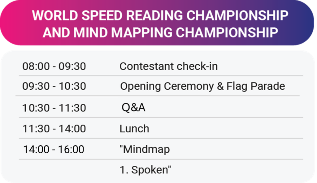 Không chỉ dừng lại ở Cuộc thi Trí nhớ, sự kiện năm nay còn đồng thời diễn ra hai giải đấu trí tuệ song hành: Giải Vô địch Sơ đồ tư duy Thế giới và Giải Vô địch Đọc nhanh Thế giới – những công cụ cốt lõi giúp khai phá tiềm năng não bộ và thúc đẩy sự phát triển tư duy vượt trội.